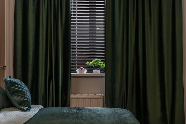 Aranżacje z zasłonami butelkowa zieleń
